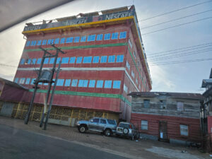 Op dit enorme magazijn aan de Wicherstraat, liggen de zinkplaten al geruime tijd los en bestaat zeker het gevaar dat ze naar beneden kunnen komen, hetgeen groot gevaar inhoudt voor personen en voertuigen, die er voortdurend passeren. De eigenaar van dit magazijn behoort zo spoedig mogelijk hier in te grijpen, om deze gevaarzetting te verwijderen.